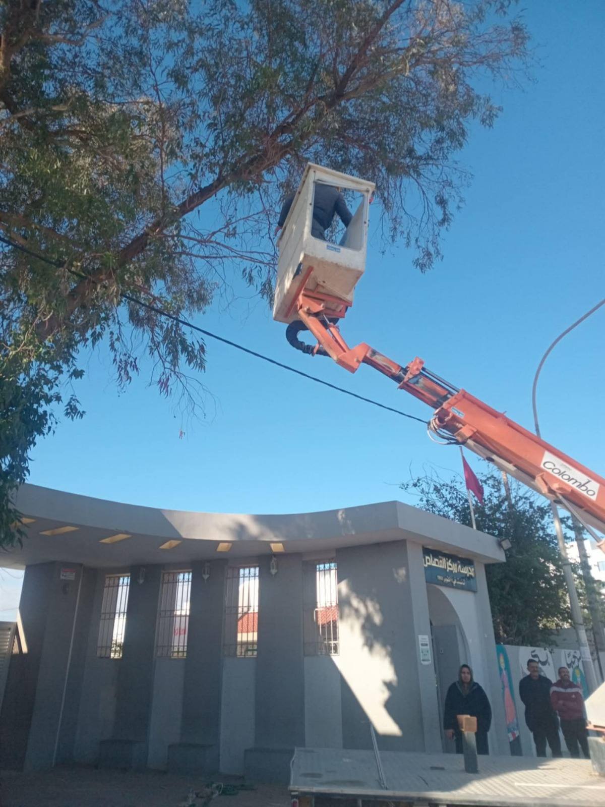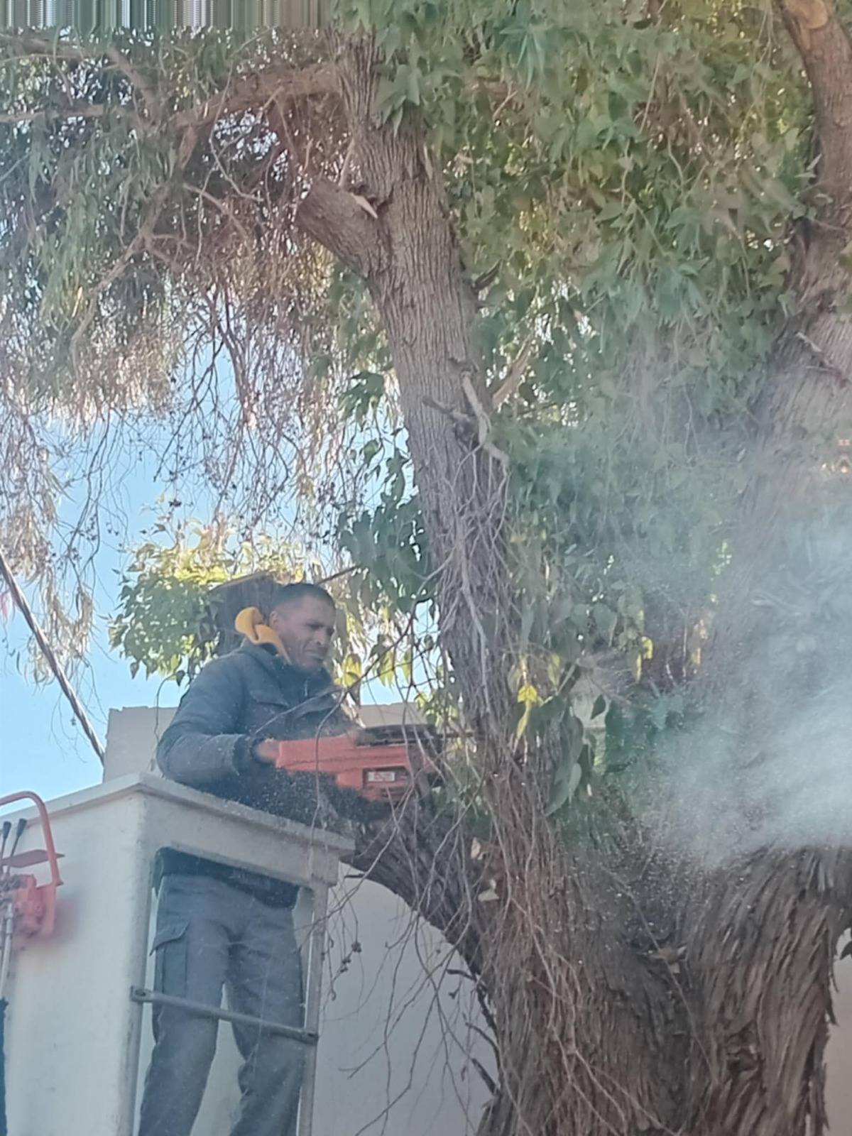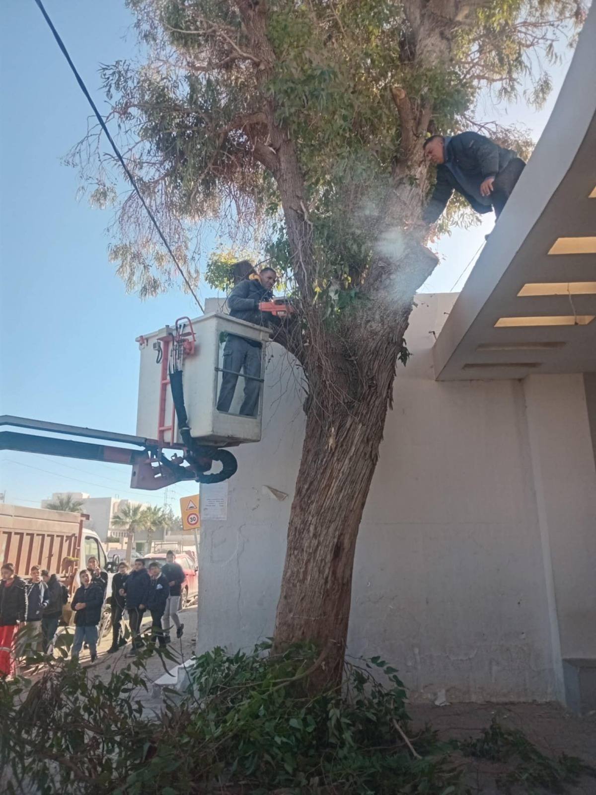 - تقليم شجرة أكاسيا بمدرسة القصاص