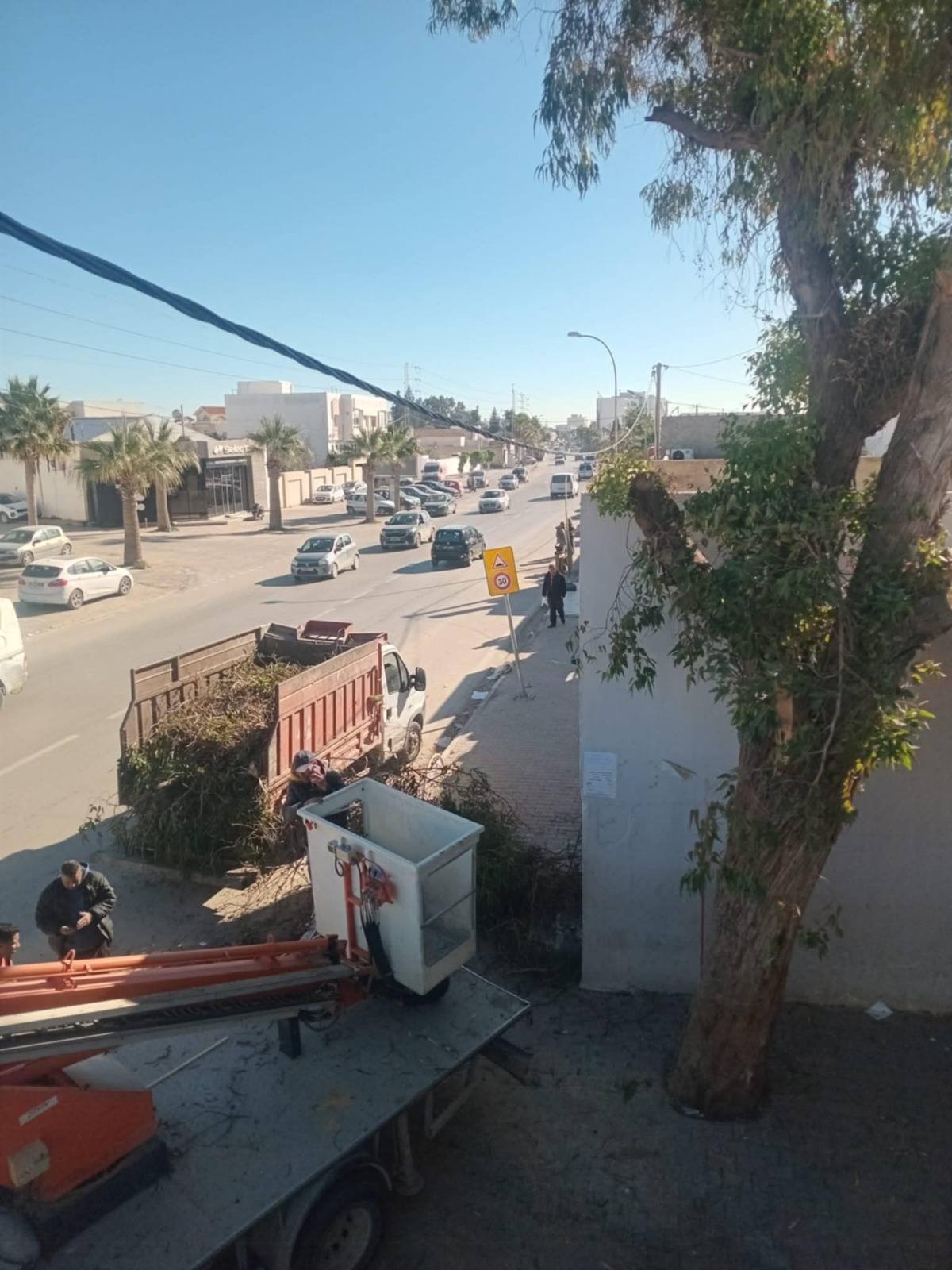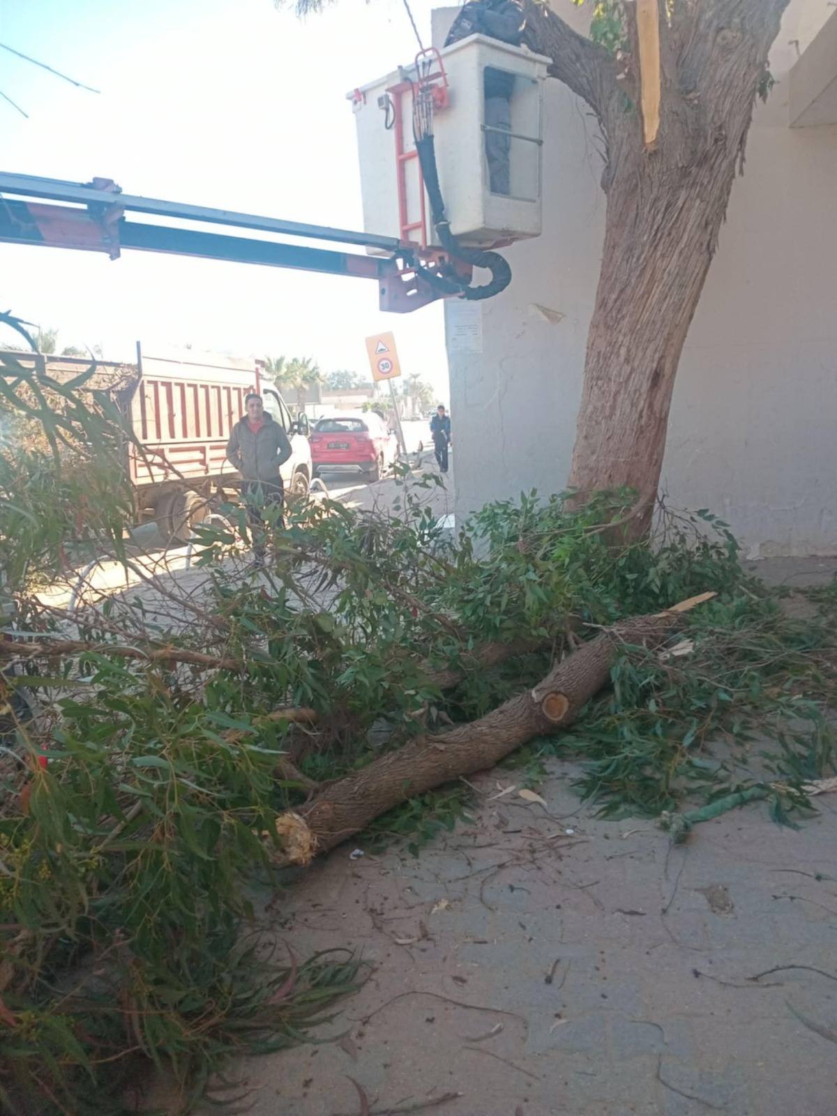- تقليم شجرة أكاسيا بمدرسة القصاص